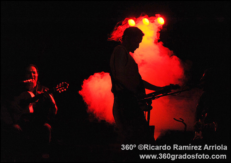 en concierto, acompañado por el guitarrista gitano Diego Cortés.