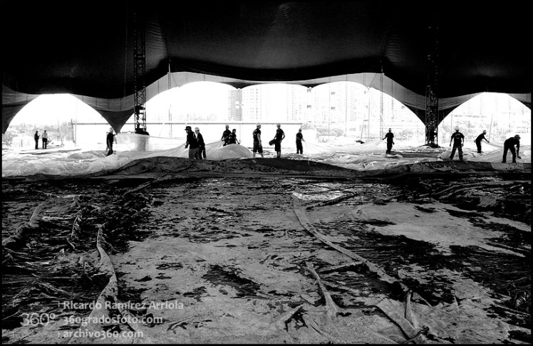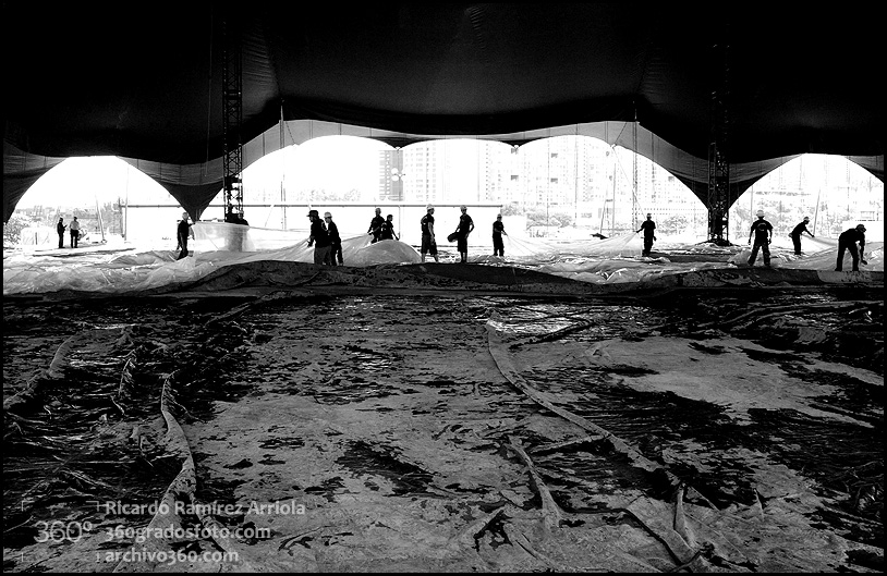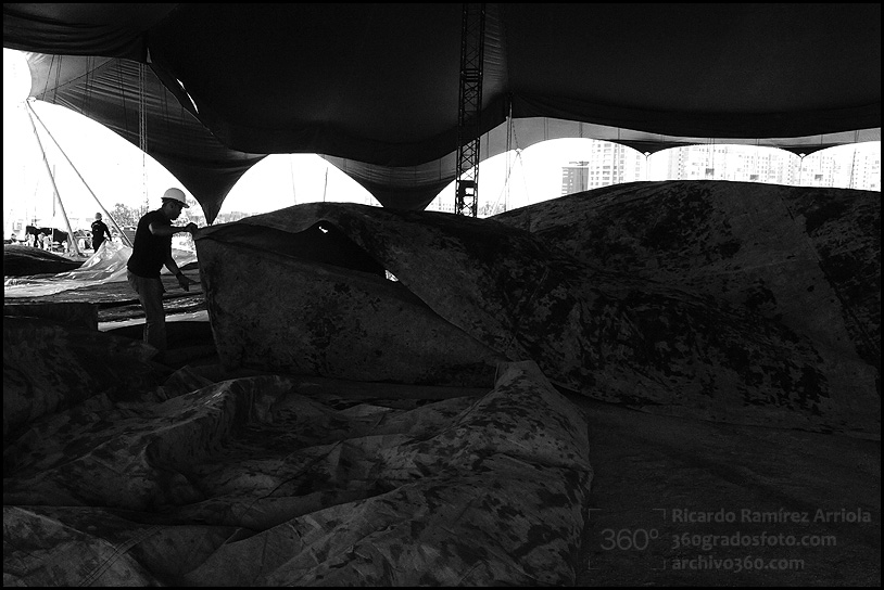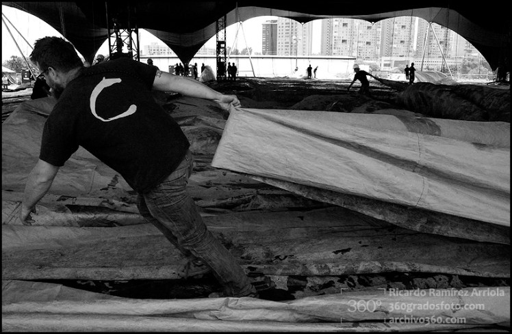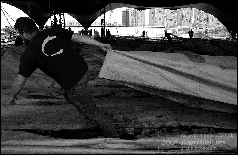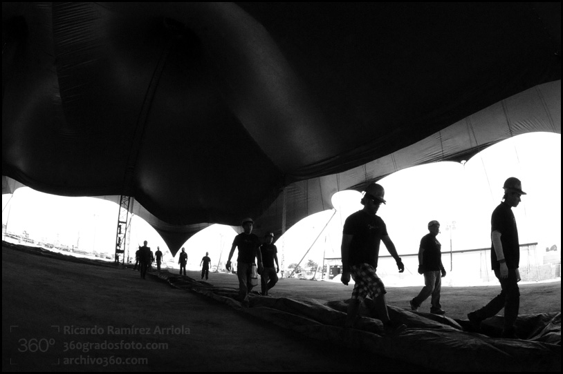 Mucho trabajo antes de que empiece el espectáculo. Buenas fotos del montaje.