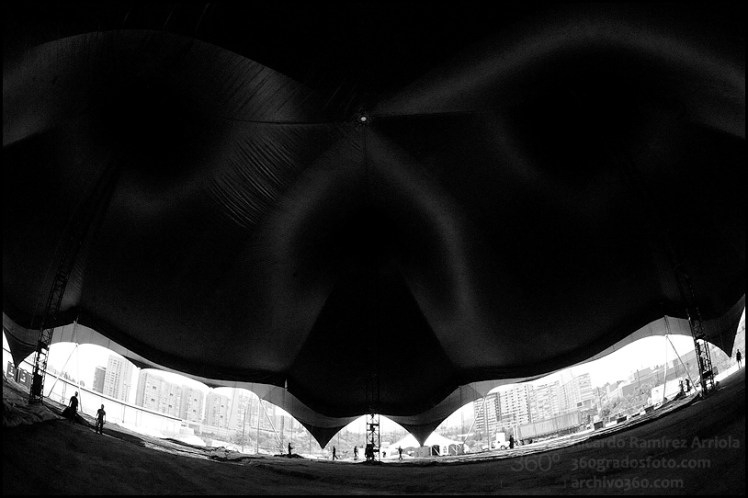 71,400 metros cuadrados de lona a 110 pies de altura crearán una carpa que abarcará más de 26,264 metros curados de superficie, donde se presentará Cavalia a partir del próximo 9 de mayo de 2012.